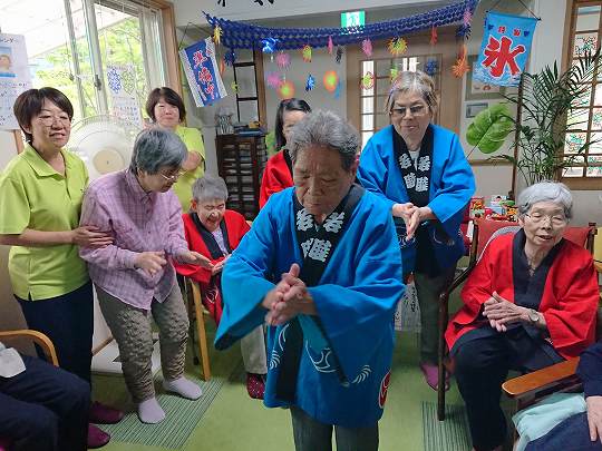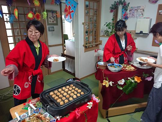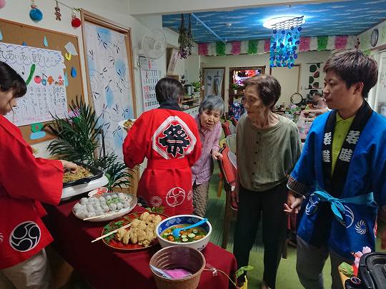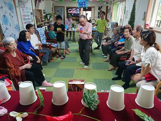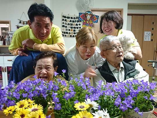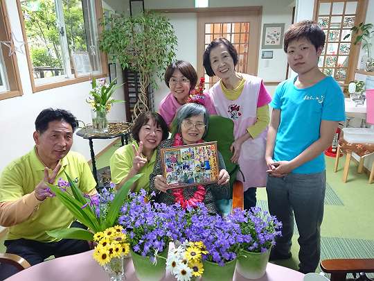 2019年6月5日開催の時の写真です。参加して下さったのは、写真左から介護支援センターふらっとさん、デイサービス森の家さん、和気あいあい、南第七地域包括センターさん、であいさん、花畑ホーム恵園さんです。