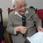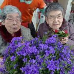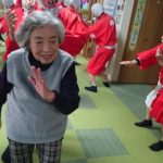 次のイベントは誕生会(^▽^)/ 今回は11月生まれの方の誕生会です!スタッフは後ろで大きな大きなお花を持ってお祝いで~す。